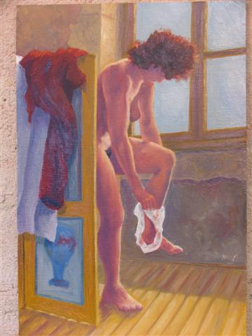 Nu au paraventPeinture à l'huile Nu au paravent | Rue de MontbardPeinture à l'huile Rue de Montbard | Joueurs de cartes au café du portPeinture à l'huile Joueurs de cartes au café du port |